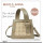 HB0074 Small, belt handle bag in Taupe with wicker detail on front. Light gold hardware and zip closure