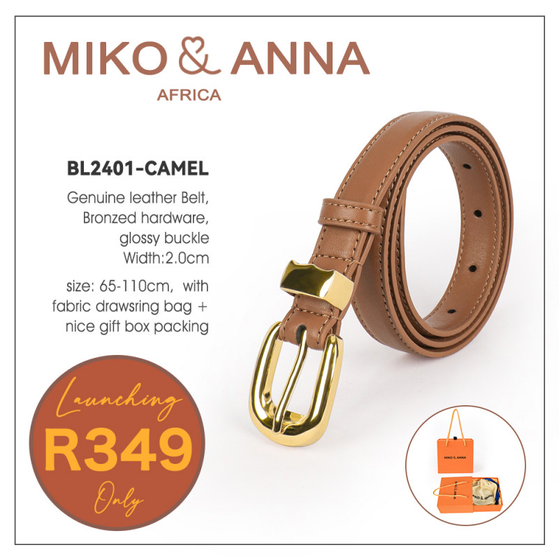 BL2401-CAMEL Genuine leather Belt, Bronzed hardware, Glossy Buckle, Width:2.0cm